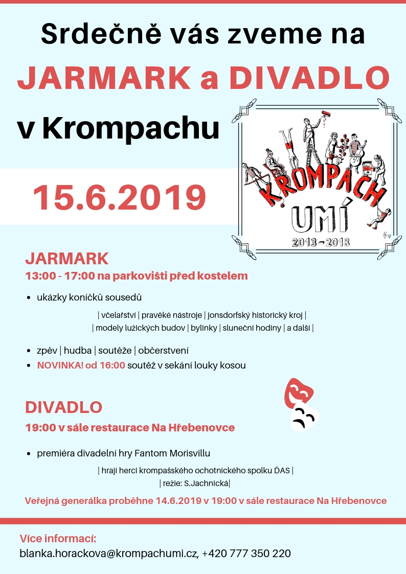 Srdečně zveme na sousedský jarmark na téma, co všechno lidi v obci Krompach umí. Pozvánka na jarmark je zde.